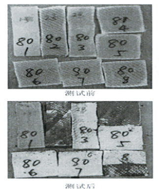 分析原因: 1號(hào)試件的敷膜層為改性PVC,與滌綸纖維之間的親和力要好于敷膜層為改性PE的試件;在開(kāi)放條件下四周熱水不規(guī)則地侵蝕質(zhì)量標(biāo)準(zhǔn)難統(tǒng)一的試件也是造成敷膜層與編織層剝離的因素;改性PE材料熱穩(wěn)定性差,熱膨脹比大也是因素之一。