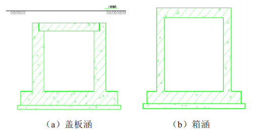 (2)蓋板涵是靜定結構,適宜于地基承載力較好的地方;箱涵是多次超靜定結構,結構穩(wěn)定性好,適宜于地基承載力較弱處。