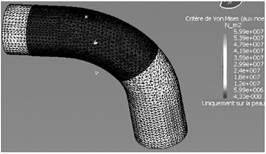 經(jīng)有關(guān)部門研究, 采用凱夫拉纖維復(fù)合材料補(bǔ)強(qiáng)技術(shù)對此段管道進(jìn)行修復(fù)。 補(bǔ)強(qiáng)方案確立后, 經(jīng)過耐斯管道公司軟件分析, 計(jì)算管道缺陷的相關(guān)數(shù)據(jù)信息, 確定了補(bǔ)強(qiáng)修復(fù)的產(chǎn)品類型和方式。 首先對無缺陷管道承受內(nèi)壓時(shí)管壁應(yīng)力分布進(jìn)行計(jì)算。 在管道完好無損情況下, 承受11MPa的內(nèi)壓時(shí), 建立3D模型對該方案進(jìn)行分析。 在3D模型中, 鋼材的彈性模量取207GPa, 泊松比為0.3, 屈服強(qiáng)度為450MPa。 管道內(nèi)的運(yùn)行壓力設(shè)定為11MPa, 凱夫拉纖維復(fù)合材料補(bǔ)強(qiáng)層數(shù)為26層。