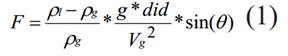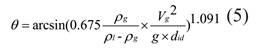 式中, 臨界傾角(度); 液體密度 ; 氣體密度(與溫度和壓力相關(guān)); 重力加速度; 管道內(nèi)徑;氣體表觀速度。