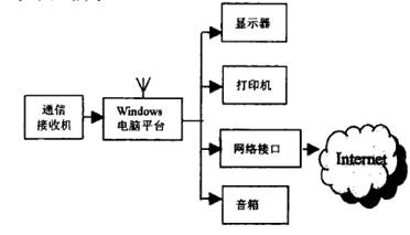 監(jiān)控系統(tǒng)主要由通信接收機(jī)、Windows電腦平臺(tái)、顯示器、打印機(jī)、音箱和網(wǎng)絡(luò)接口等組成,如圖1所示。