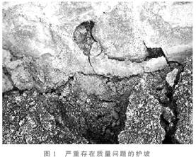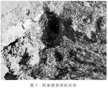 1.管道砌石水泥護(hù)坡質(zhì)量問(wèn)題。管道通過(guò)的沿河、溝農(nóng)田修筑的高地埂水泥砌石護(hù)坡有些地段出現(xiàn)裂縫、空洞、甚至石塊塌落,造成嚴(yán)重滲漏,農(nóng)田地表塌陷,凸凹不平,致使農(nóng)田水土、營(yíng)養(yǎng)流失,農(nóng)作物因水、肥不足而減產(chǎn)(見(jiàn)圖5)。