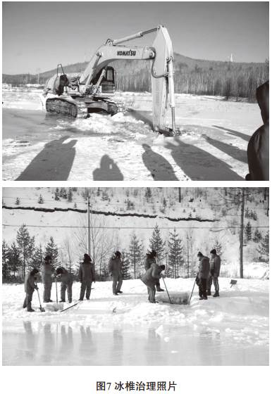 針對該冰椎的形成原因,采取了開挖表層凍結面,將水流壓力泄放的措施,如圖7所示。為了更好地泄放水壓,防止未凍結水對冰椎的繼續(xù)補充,可以在泄放點修筑排水通道。泄放處的水在管道表面凍結,形成保溫層,可以阻止持續(xù)凍結。排水和保溫措施消除了凍脹的發(fā)生條件,保證了管道安全。
