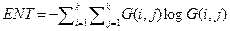 (4)熵(entropy):該參數(shù)表示的是某個(gè)圖像的信息量,由于紋理信息是圖像信息的一部分,并且它是一個(gè)隨機(jī)性的度量,因此,當(dāng)共生矩陣中的元素隨機(jī)性比較大、并且該矩陣的空間共生矩陣中的元素的值基本相等時(shí),熵較大。該特征參數(shù)表征的是圖像中紋理的非均勻程度或者說(shuō)復(fù)雜程度。