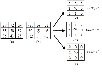 焊縫紋理特征提取涉及邊界清晰度、局部信息細(xì)化程度,傳統(tǒng)方法使用二值法LTP、LBP、CLBP 紋理特征描述方法,但紋理描述的精度受到影響,因此,提出了完全局部三值CLTP模式,包含3 種核心算子,即中心描述子、符號(hào)描述子和大小描述子,分別用CLTP_C ,CLTP_S , CLTP_M表示,將算子轉(zhuǎn)化后,最終得到修正的