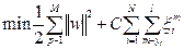 為樣本訓(xùn)練集,l為樣本個(gè)數(shù),N代表樣本維數(shù),M代表樣本的類(lèi)別,引入非負(fù)松弛變量ξi,則該方法的優(yōu)化問(wèn)題如公式(11):