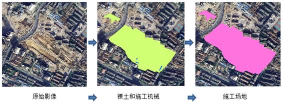 在油氣管道的眾多破壞因素中,項目施工出現(xiàn)的頻率最高,帶來的破壞性極強,成為油氣管道巡檢的重點。施工場地具備的穩(wěn)定要素有裸土、板房和機械設(shè)備三種,根據(jù)其光譜、紋理、形狀及結(jié)構(gòu)等特征可以對油氣管道周邊的施工場地進(jìn)行有效的識別。