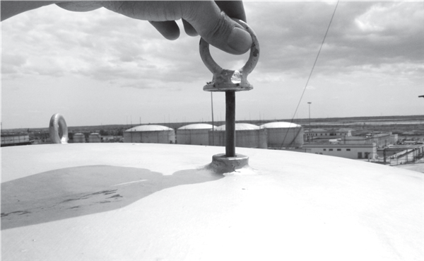 (5)大罐靜電釋放技術(shù)利用金屬導(dǎo)體直接接地放電的方式來消除人體靜電。員工每次上罐前觸摸金屬導(dǎo)體,釋放身體上的靜電,靜電通過靜電釋放儀下面的接地線釋放到大地。存在以下隱患: