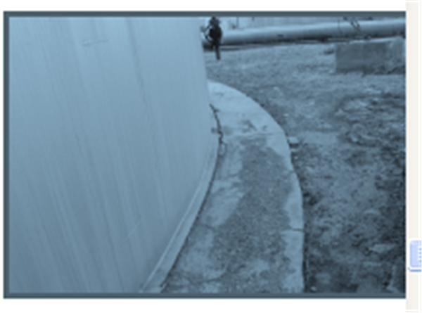 (3)罐體消防管線放水采用立管末端排水方式。而排出來的水直接排在罐體散水水泥板上, 經(jīng)過長年運(yùn)行,導(dǎo)致水泥板加速老化,出現(xiàn)裂縫,嚴(yán)重的可能導(dǎo)致大罐地基變形,威脅大罐運(yùn)行安全(圖3)。