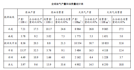 1 全球油氣資源的生產(chǎn)及消費(fèi)情況