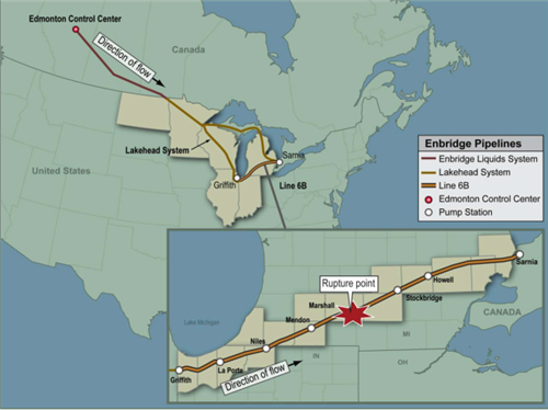 注: 6B管線(6B Line)從格里菲斯(Griffith)泵站至薩尼亞(Sarnia)泵站