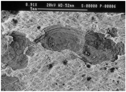 圖 4 能看到條紋的腐蝕凹坑微觀圖