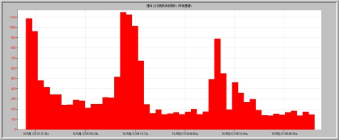 圖9 所有通道撞擊數(shù)隨時(shí)間變化圖