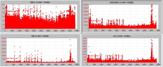 所有通道的幅值、持續(xù)時(shí)間、能量、計(jì)數(shù)隨時(shí)間的變化如圖8所示: