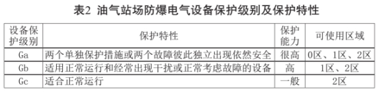 根據(jù)安全科學(xué)理論,由爆炸性混合物形成的爆炸危險場所是固有的、難以避免的,為第一危險源;防爆電氣設(shè)備的防爆性能一旦失效很可能成為爆炸危險場所的有效點燃源,為第二危險源。防爆電氣設(shè)備的選型應(yīng)結(jié)合爆炸危險環(huán)境和防爆電氣設(shè)備特點,選擇防爆性能與爆炸性危險環(huán)境相匹配的電氣設(shè)備,防爆電氣設(shè)備的類型、級別、組別、環(huán)境條件以及使用條件等均應(yīng)符合相關(guān)標準[5,8]和設(shè)計規(guī)定。采取不同防護措施的各類型防爆電氣設(shè)備,其爆炸防護能力各不相同,具體見表2。