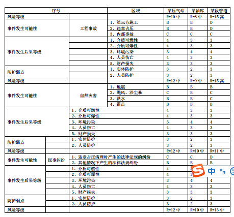 5、根據(jù)調(diào)研結(jié)果以及專家判斷,對于區(qū)域遭受事件攻擊的可能性順序從大到小排列為:油庫>氣庫>油站>氣站>油管道>氣管道>油閥室>氣閥室>油陰保站>氣陰保站。