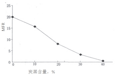 圖1 炭黑含量對(duì)樹脂MFR的影響