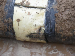 雖然標準中對聚氨酯泡沫閉孔率有嚴格要求,但僅限于工廠預制。在管道補口處,保溫層通常采用現(xiàn)場發(fā)泡或預制沫瓦,很難保證施工質量。從國內一些保溫管道以及長呼線的內外檢測結果來看,外腐蝕問題主要集中在補口位置。2015年至2016年,中石油管道分公司開展了保溫管道腐蝕調查和研究,針對保溫層補口進水問題,設計了管道防腐保溫層補口結構,開發(fā)了用于現(xiàn)場修復的聚氨酯保溫層發(fā)泡模具,應用結果表明修復后的防腐保溫層具有較好密封性。同時還設計了補口處保溫層含水率監(jiān)測系統(tǒng),可實現(xiàn)對保溫層進水的快速、準確響應。