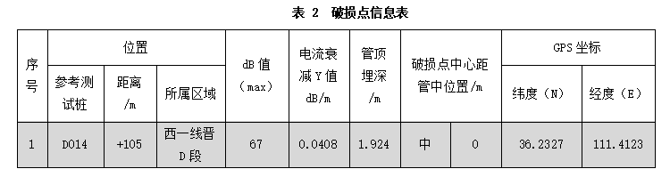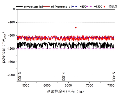 ② 陰極保護的有效性檢測,對其保護水平(管道是否獲得全面、合適的陰極保護,是否存在欠保護及過保護情況)給予全面評價,對檢測中存在的問題進行根源確認;確定破損處管體的腐蝕/陰保電流的流向,對其腐蝕程度給予評價。