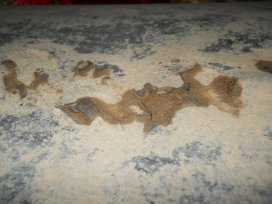 根據(jù)間接檢測結果,判定D014樁+15m處破損點為二類破損點,對該處破損點進行了開挖驗證。開挖后發(fā)現(xiàn)此處破損點在管道底部6點位置有1 000 ×50 mm環(huán)氧粉末剝離,如圖3所示。防腐層破損長度達1 m,管體表面有輕微浮銹。這也從側面印證了陰極保護基本處于有效狀態(tài)。