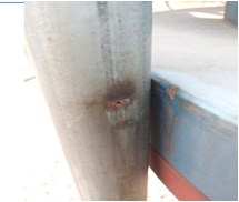 在管道運行中,多次發(fā)生鰲-廣線管道、從化分輸站站內(nèi)管道及設(shè)備陰極保護(hù)恒電位儀在未開機(jī)情況下被燒毀的情況(圖2);鰲頭站、廣州分輸站等四座輸氣站場的進(jìn)出站管道絕緣接頭兩端的5個等電位連接器也受到強(qiáng)電流的干擾被燒毀(圖3);從化分輸站、三水分輸站的越站閥及線路截斷閥的引壓管絕緣接頭被燒毀(圖4);同時也發(fā)現(xiàn)BV閥個別引壓管之間有電弧灼燒痕跡,甚至在BV閥和埋地鋼質(zhì)護(hù)管套管之間也存在打火、金屬附屬設(shè)施被電弧熔接到一起的情況(圖5)。據(jù)分析,發(fā)生恒電位儀燒毀的原因,是大地內(nèi)流入電流超過恒電位儀元器件額定參數(shù),使元器件產(chǎn)生過熱現(xiàn)象。發(fā)生打火、熔接現(xiàn)象,是接地極放電時,輸氣管道的電位升高(或者降低),由于絕緣接頭的存在,絕緣接頭兩端管道或者管道與本地設(shè)備之間形成高的電壓差,在兩者距離接近的情況下產(chǎn)生電弧。