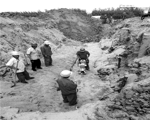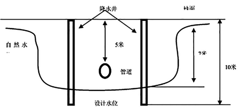 依據(jù)相關(guān)技術(shù)規(guī)范,結(jié)合巖土工程勘察報告,根據(jù)經(jīng)濟(jì)、合理、安全的原則,沿管道腐蝕缺陷修復(fù)作業(yè)坑均勻布設(shè)降水井14個(圖-7), 降水采用直徑400的水泥管井,井深10m(圖-8),保證穩(wěn)定水位降到輸油管道2m以下。