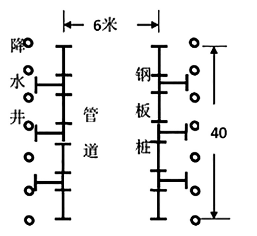 為了保證管道腐蝕缺陷點(diǎn)修復(fù)作業(yè)坑開挖成功,先在作業(yè)坑四周設(shè)置圍堰,然后在作業(yè)坑兩側(cè)設(shè)置鋼板樁固土措施,同時采取井點(diǎn)降水措施,使作業(yè)坑內(nèi)的水位降至輸油管道2米以下,然后再開挖修復(fù)作業(yè)坑。