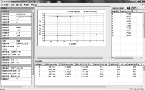 根據(jù)甘肅東段某3PE防腐長(zhǎng)輸管道所轄管道pH值、溫度等實(shí)際情況,管道可能存在經(jīng)典型SCC,可能發(fā)生沿晶應(yīng)力腐蝕開(kāi)裂(IGSCC)和穿晶應(yīng)力腐蝕開(kāi)裂(TGSCC)。為獲取該管道環(huán)境腐蝕信息,對(duì)該管道沿線(xiàn)典型環(huán)境點(diǎn)腐蝕性進(jìn)行了測(cè)試,測(cè)試結(jié)果見(jiàn)圖3(列舉測(cè)試點(diǎn)1、6)。