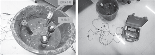 通過對比可知,上述2支參比電極與標(biāo)準(zhǔn)電極電位差大于5mv,說明2支電極均已失效,已不能滿足工程測量精度要求。隨著使用時間的延長,參比電極受離子污染程度越深,電極自身電位偏差越大。