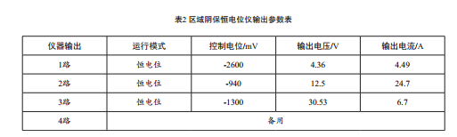 表1 干線陰保恒電位儀輸出值