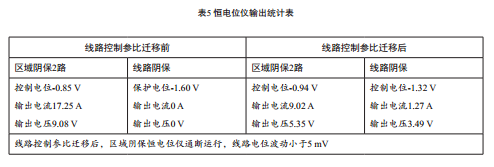 線路控制參比電極遷移前后,區(qū)域陰極保護系統(tǒng)恒電位儀及線路陰極保護系統(tǒng)恒電位儀輸出參數(shù)如下表: