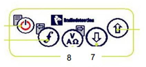 ( 2)接收機。打開接收機電源 ,調(diào)節(jié)頻率 ,通過向上/向下箭頭 調(diào)節(jié)信號,用天線鍵 來進行谷峰值、峰值、谷值、信號天線模式的切換。頻率調(diào)到8KHz(與發(fā)射機頻率要保持一致)。接收機表盤如圖3所示。