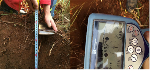在平時的光纜定位探測中,我們不僅要做好第一步測量工作,同時還要注意對測量結(jié)果進行驗證,多方面確保數(shù)據(jù)的準確性。最簡單的做法就是把接收機從地面提高0.5米重復(fù)進行深度測量。如果測量到的深度增加的值與接收機提高的高度相同,表示深度測量是正確的。如果條件合適,深度的測量偏差為±2.5%。然而,有時不可能知道現(xiàn)場條件是否適合深度測量,在這種情況下可采用以下的技術(shù)措施進行檢查。