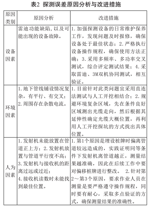 使作業(yè)人員掌握正確的測量方法和最佳的測量方式,采取多方面的的驗證措施,才能提高光纜的定位準確度,為后續(xù)工作奠定良好基礎(chǔ)。