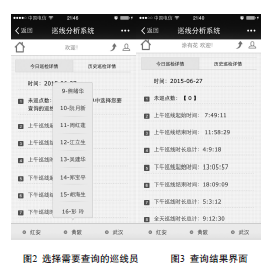 (2)在主界面下方選擇需要查詢(xún)的巡線(xiàn)工(見(jiàn)圖2),選擇巡線(xiàn)工姓名后界面顯示出當(dāng)日截至查詢(xún)時(shí)間巡線(xiàn)工的巡檢結(jié)果(見(jiàn)圖3)