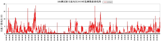 圖5 105測(cè)試點(diǎn)24 h交流干擾曲線(xiàn)圖