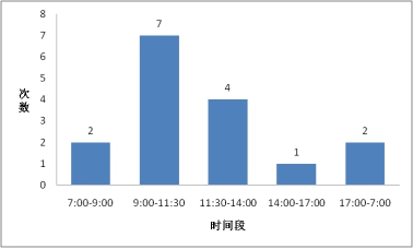 圖4 各時(shí)間段光纜中斷次數(shù)分布圖