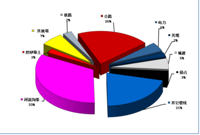 管道伴行光纜被視為管道的“最后一道屏障”,光纜損傷作為管道損傷的未遂事故,很大程度上反映了企業(yè)第三方施工管理水平。因灌溉、泄洪需要,一些地方每年都會(huì)對(duì)溝渠進(jìn)行清淤,據(jù)統(tǒng)計(jì),因溝渠清淤和機(jī)械施工造成光纜損壞合計(jì)占到60%以上(見(jiàn)圖3)。