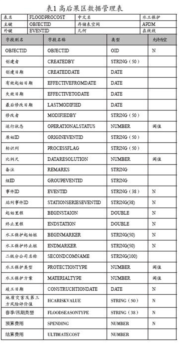 空間數(shù)據(jù)是地理信息系統(tǒng)的重要組成部分,在GIS系統(tǒng)中處于核心地位。對本系統(tǒng)來說水工保護數(shù)據(jù)在系統(tǒng)中以線狀地物的形式存儲,表結(jié)構(gòu)如表1所示。