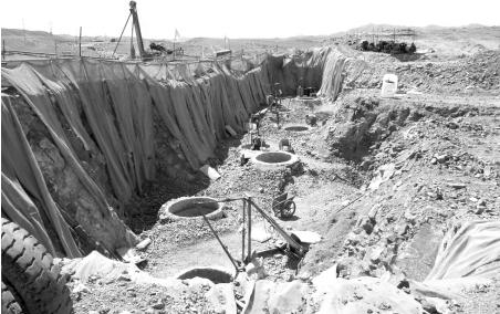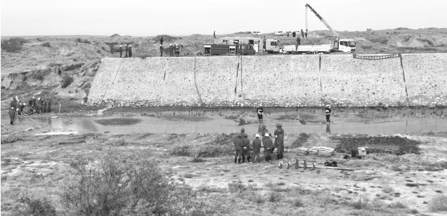 4. 果子溝內防沖墻后部, 由于河水沖刷將防沖墻淤土側背面的土掏蝕, 造成管道局部埋深不足,有的地方埋深已不足1m。