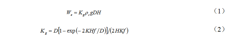 式中,We 為單位長度管頂土壓力;Kg 為管頂豎向土壓力集中系數;K為水平土壓力系數;f 為管土摩擦因數;ρs 為圍土密度;D為管道外徑;H為管頂回填土厚度。