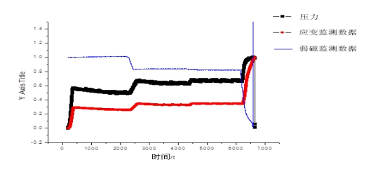 Φ457爆破試驗應(yīng)變片與弱磁信號對比圖