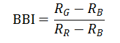 同其它地物相比,彩色板房顏色特殊,具有特殊的光譜特征,其光譜反射率在可見光的藍(lán)、綠、紅波段均較低,據(jù)此,本研究構(gòu)建了板房光譜識別指數(shù)(BBI,Blue Building Index)進(jìn)行彩色板房的識別。式中,RB、RG、RR分別為可見光藍(lán)、綠、紅波段的反射率。