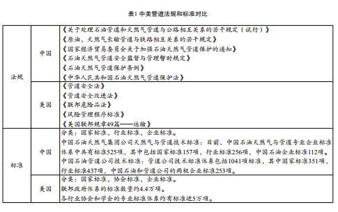 (1)學(xué)習(xí)國外先進管理經(jīng)驗相對于發(fā)達國家的管道法規(guī)和標(biāo)準(zhǔn)體系,我國無論是技術(shù)水平還是管理水平都存在一定差距。美國是世界上擁有油氣管道最多的國家,制定了一系列管道安全技術(shù)法規(guī),建立了完善的標(biāo)準(zhǔn)管理體制,值得研究和借鑒,詳見表1。