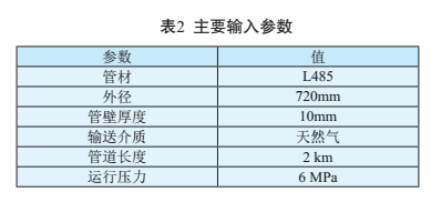 以具體某管道的一高后果區(qū)管段為例進(jìn)行計(jì)算,主要輸入的參數(shù)見表2。
