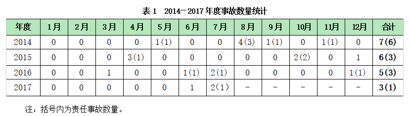 圖1 2014―2017年公司較大影響生產安全事件發(fā)生趨勢