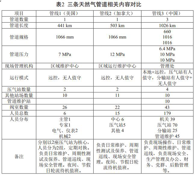1 中外天然氣管道運行管理對比