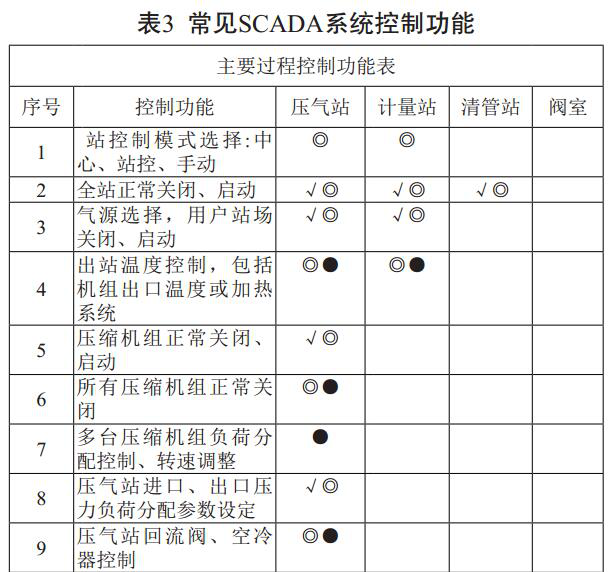 對比分析發(fā)現(xiàn),基于站場自動邏輯控制的遠程控制是建立在站場安全運行的前提下,在站場自動控制的基礎上,實現(xiàn)調控中心遠程宏觀操作控制。通過優(yōu)化SCADA系統(tǒng)遠程自動控制功能,可有效提高遠程監(jiān)控管理的有效性和可靠性,降低人為原因產(chǎn)生的不確定性或不安全因素,提高管道的運行效率和可靠性,進而降低管線的運行成本。通過總結長期以來的經(jīng)驗,我們得出典型SCADA系統(tǒng)控制功能(見表3)。