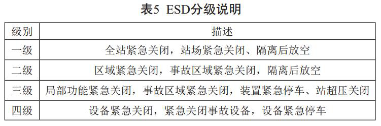 通過開展SIL評估活動,對照IEC 61508、 IEC61511標準識別站場安全功能回路,確定對應的SIL等級,查找不符合問題。針對系統(tǒng)安全可靠性和可用性的平衡問題,制定出統(tǒng)一的ESD分級控制和緊急控制功能(見表5),并提出了明確的功能安全管理和全生命周期管理的概念和要求。