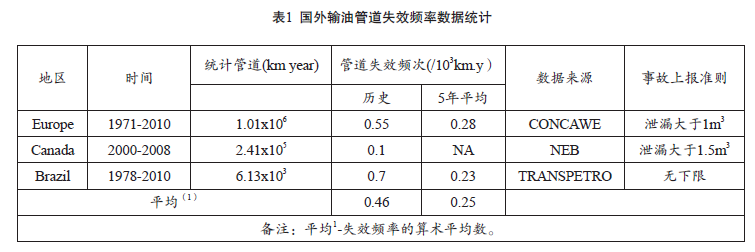 圖1 國內(nèi)外輸油管道失效數(shù)據(jù)統(tǒng)計分布圖